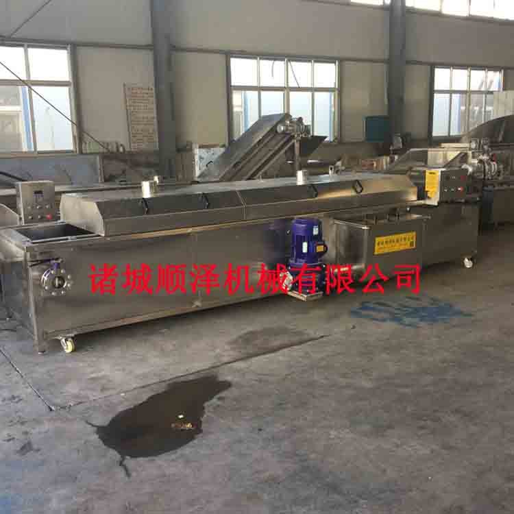 2、结构:整机设计为独立内胆结构,外形框架焊接而成,结实耐用,增长设备使用寿命。内胆结构的优点首先便于清洗,保证设备的清洁度。其次网带不受框架限制,那怕较严重的碰撞受损,也不影响网带的输送。漂烫段保温层厚度为5公分。有效的保证热源的利用,减少热损耗,节约能源成本。冷却段为自然水冷却,边进边出能快速降温,保证产品质量跟口感度。