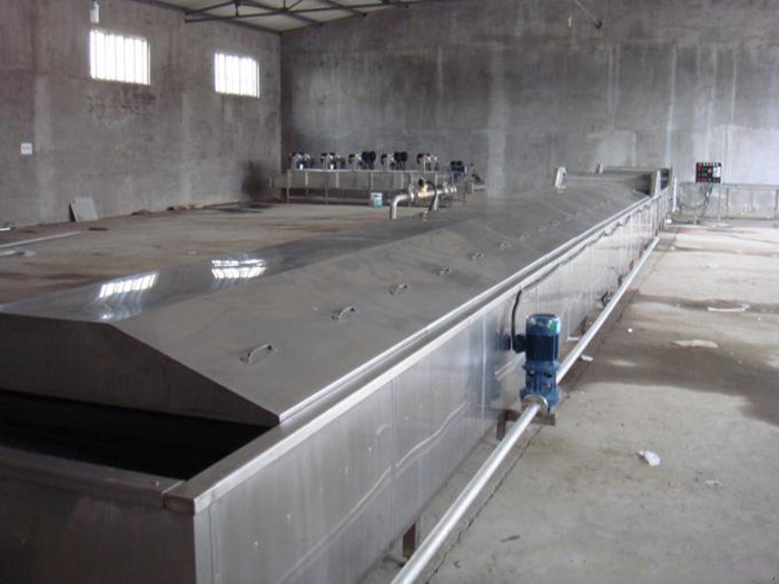 杀菌—冷却—清洗—干燥,可配备杀菌曲线记录仪监控和生产过程,达到自动效率,安全卫生的生产目的。主要技术参数:灭菌时间10-40min灭菌温度65-95℃可调蒸汽压力1-4kg加工能力根据用户要求设计冷却方式常温或强制冰水运行速度无ji调速网带宽度500-1500mm功率常温冷却3kw冰水冷却22kw耗汽量0.5-1.0m3/h电源380v/50Hz生产量0.5-5吨/小时。 软包装巴氏杀菌机特点 整机采用SUS304不锈钢,温度、速度可根据工艺要求设定,该机运行平稳,不锈钢带强度高伸缩性小,不易变形,易保养,操作机维护方便等特点,与目前土法(杀菌池)相比劳动强度低,人力少,自控化程度高,温度可在98°内自动调控,上下层水温差较小,产品质量容易控制,是蔬菜食品加工行业的理想设备。在食品、饮料、制药等行业中,要求对一些包装完毕的产品进行水浴灭菌。