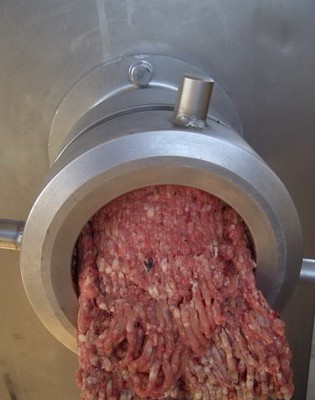 绞肉机为系列产品;工作时利用转动的切刀刃和孔板上孔眼刃形成的剪切作用将原料肉切碎,并在螺杆挤压力的作用下,将原料不断排出机外。可根据物料性质和加工要求的不同,配置相应的刀具和孔板,即可加工出不同尺寸的颗粒,以满足下道工序的工艺要求。 采用(铸铁件)或不锈钢制造,对加工物料无污染,符合食品卫生标准。 刀具经特殊热处理,耐磨性能,使用寿命长。该机操作简单、拆卸组装方便,容易清洗、加工产品范围广,物料加工后能很好地保持其原有的各种营养成分,保鲜效果良好。刀具可根据实际使用要求随意进行调节或更换。