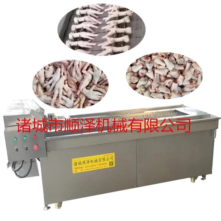 此机每分钟可切鸡爪200只,每小的产量是420kg,切**盘可调整距离,切出来鸡爪可自动分离到两个放料筐中,不需要人工挑捡,连续性传动,只需要两个人摆放就可以,有效的节约人工,提高产量。