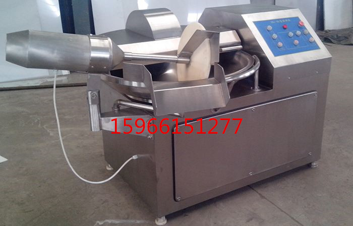 斩拌机利用斩刀高速旋转的斩切作用,将肉块,碎肉,脂肪等主要原料精细的斩切成肉馅或肉泥,同时将其它原料如水,冰片,辅料一起搅拌成均匀的乳状物。斩刀高速旋转,可以缩短运行时间,减少物料发热量,保持馅料的天然色泽、弹性、出品率和产品的保质期。